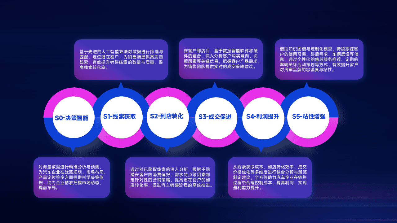 通过拓宽潜在客户来源、、、优化线索分配并提高到店转化率,,,以增强销售效率。。同时,,利用线索数据不断优化分析模型,,,,有效提升转化率,,,,扩大营销影响力。。。